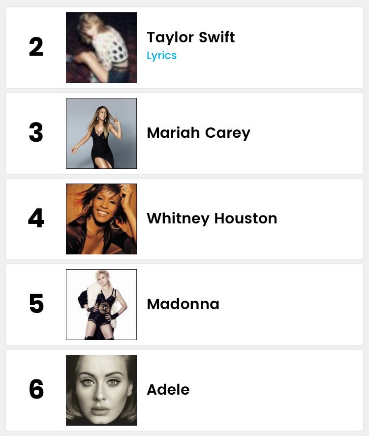 Madonna Mariah Carey Celine Dion Whitney Houston Cher